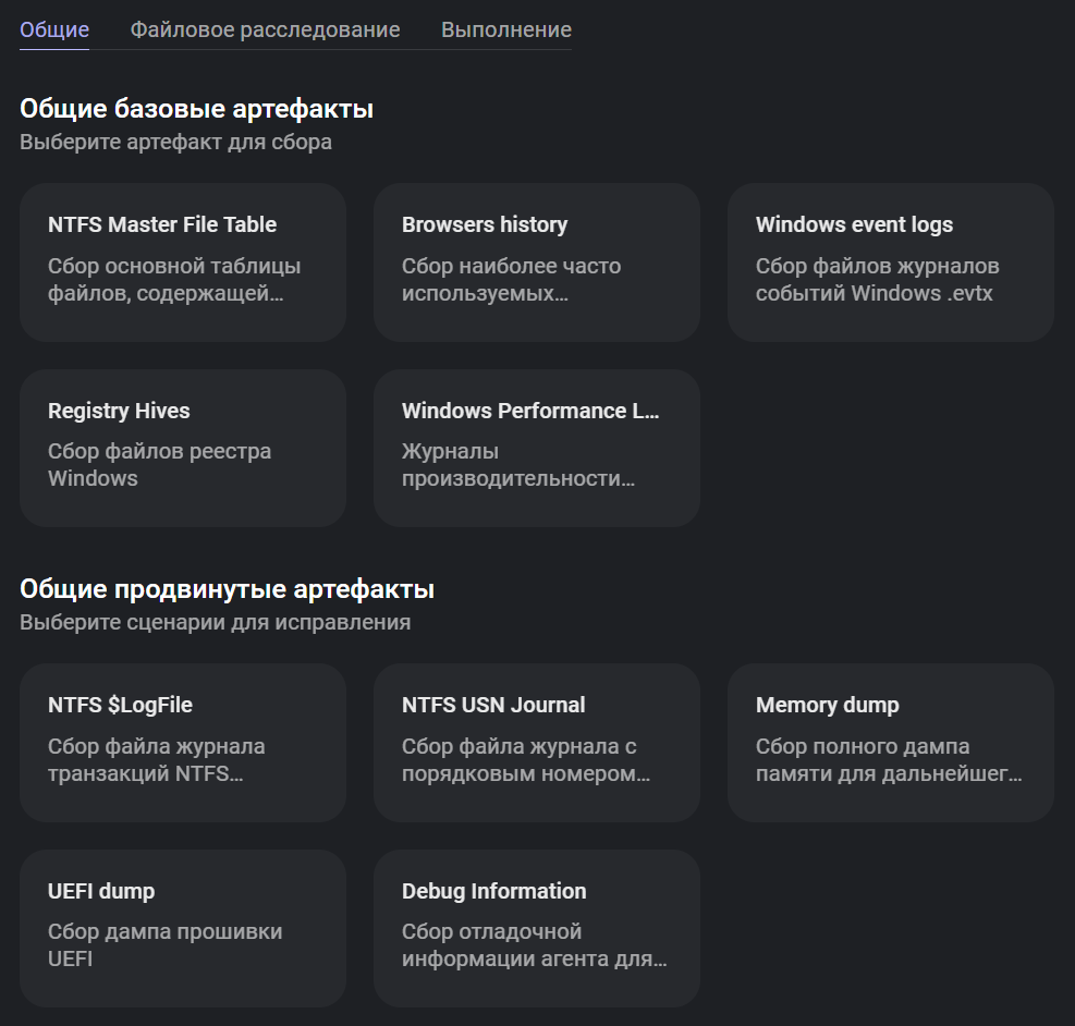 Рисунок 5. Сведения об артефактах, которые можно собирать с помощью EDR