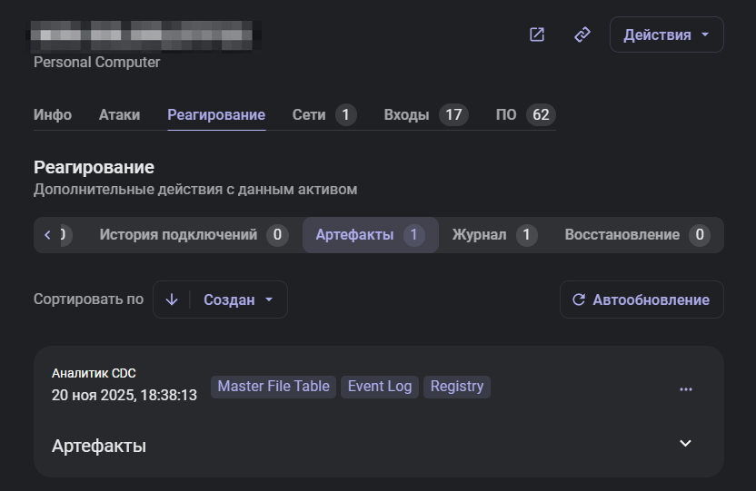 После согласования с Заказчиком команда аналитиков ЦК F6 перешла к этапу восстановления скомпрометированной системы. На этом шаге основным приоритетом стала полная очистка инфраструктуры от следов вредоносной активности. Помимо этого был проанализирован масштаб атаки, который включал в себя следующие мероприятия на других устройствах организации: