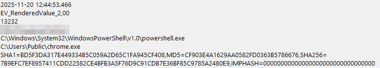 Дополнительно при первичном анализе MFT был обнаружен файл, мимикрирующий под браузер Google Chrome – chrome.exe. Время обнаружения файла – 15:44. Интересно, что данный файл находился в директории C:\Users\Public.