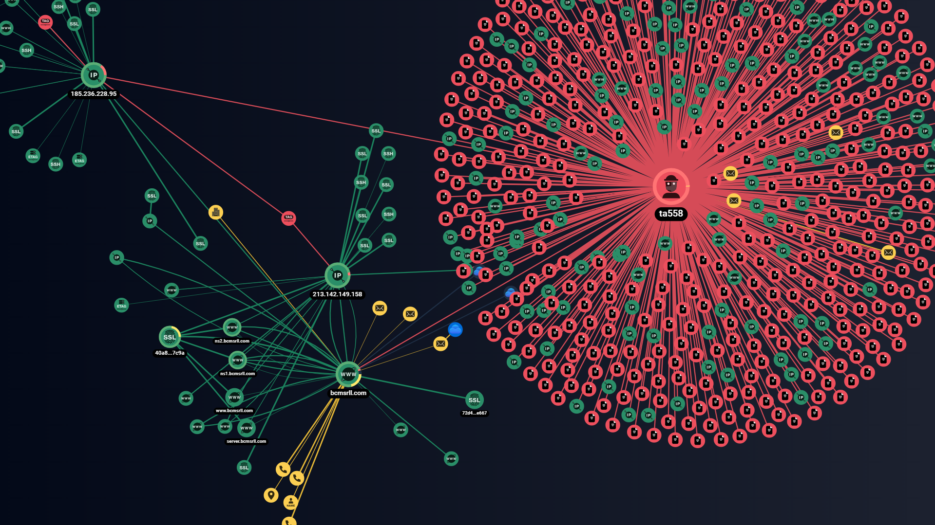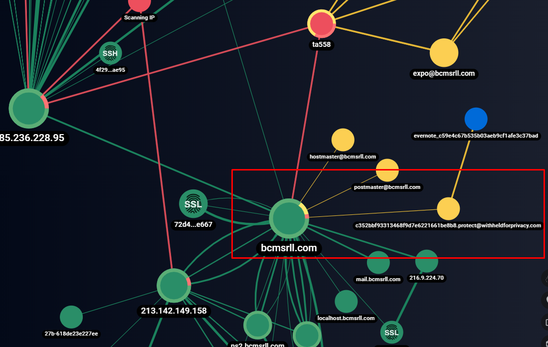 Изображение 2. Связь доменного имени с группировкой TA558, выявленная с помощью графа сетевой инфраструктуры