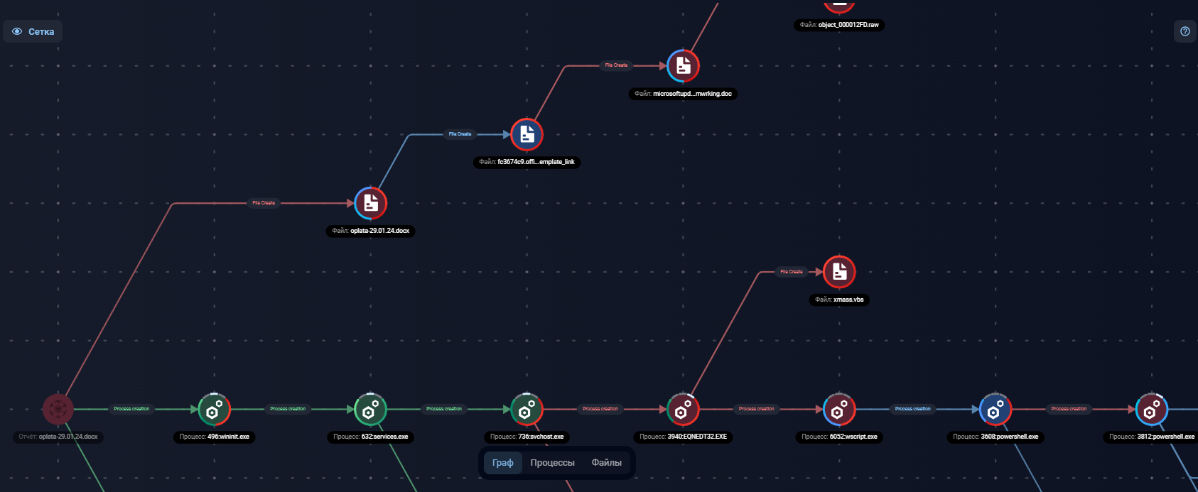 Изображение 8. Скриншот графа в интерфейсе F6 Managed XDR