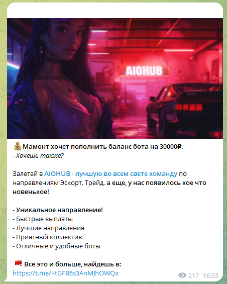 Рис. Пример объявления о наборе воркеров в команду для скама на эскорте