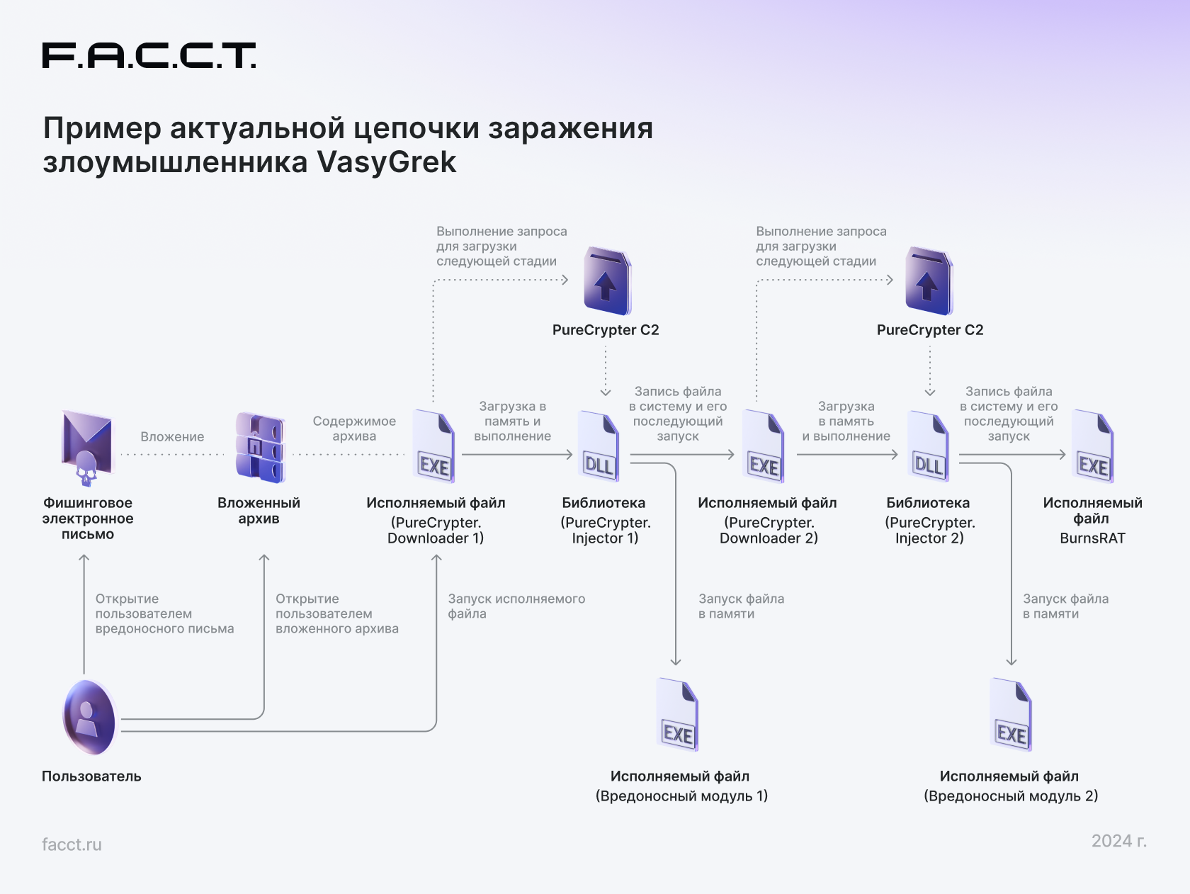 Рис. 2 — Пример актуальной цепочки заражения злоумышленника VasyGrek