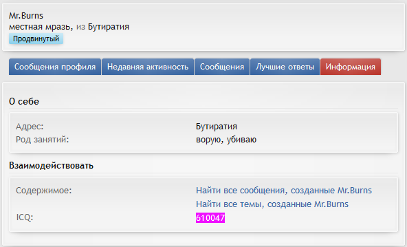 Далее мы предоставим результаты наших исследований по каждому из данных пользователей и подробнее опишем их активность на форумах, а также сферы их деятельности.
