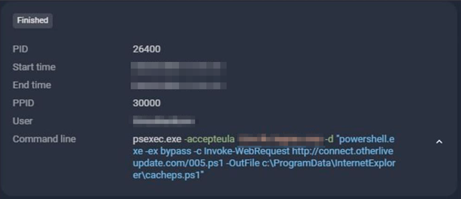 Как показывал анализ атакующие не использовали локальную учетную запись, успешно воспользовавшись утилитой PsExec для подключения к хосту и дальнейшего закрепления.