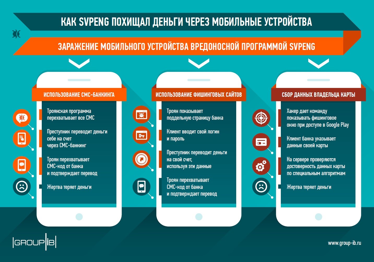 Троянская программа, которую они использовали, после установки на мобильное устройство запрашивала баланс привязанной к номеру банковской карты, скрывала поступающие СМС-уведомления и осуществляла переводы денежных средств с банковского счета на счета, подконтрольные злоумышленникам.