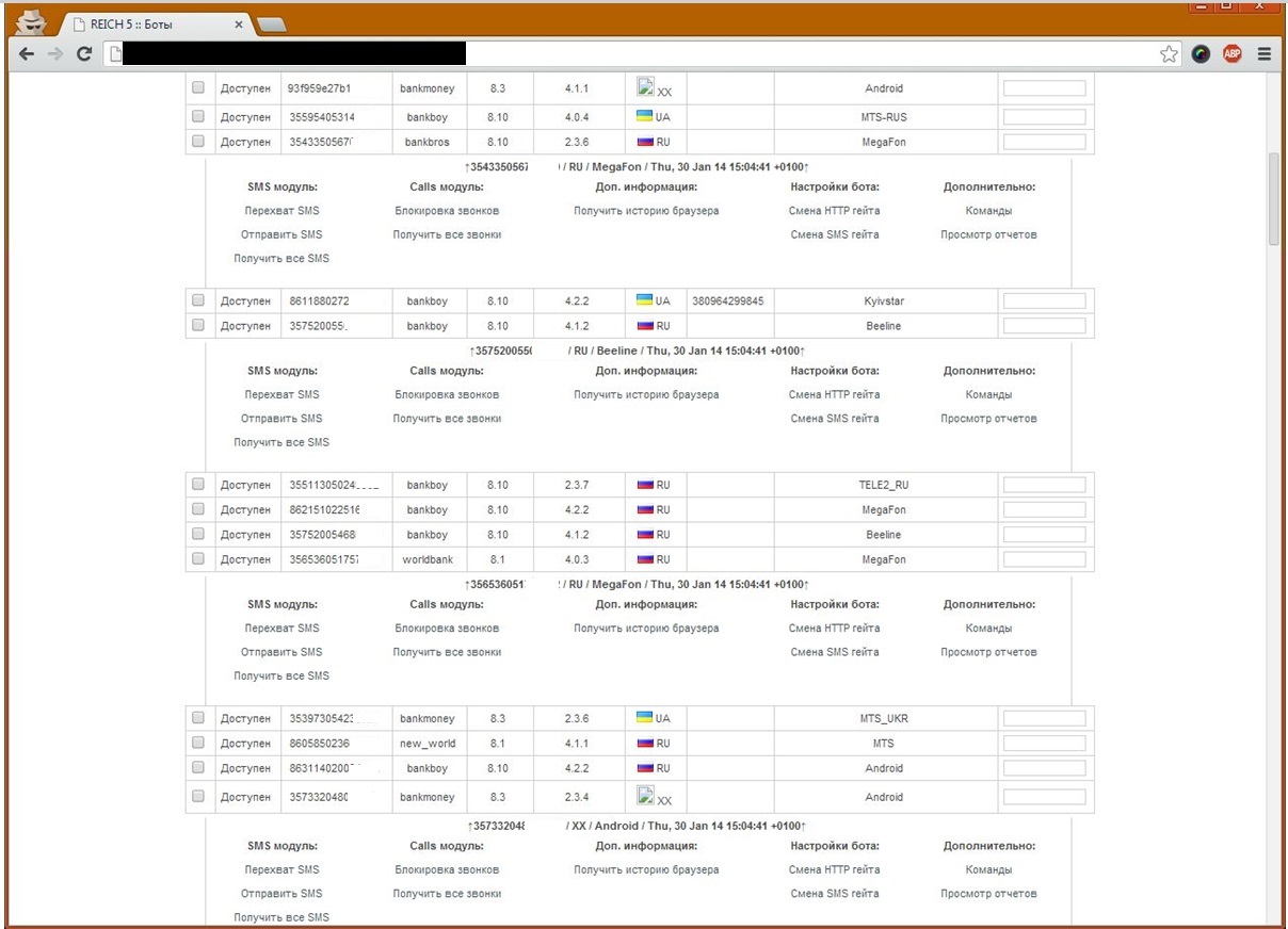 Еще позднее хакеры сделали фишинговые страницы и для некоторых российских и украинских банков, но в этот раз они получали данные не карт, а логины и пароли от Интернет-банкинга. Когда пользователь запускал банковское приложение, троянская программа подменяла оригинальное окно на фишинговое, где пользователь сам вводил необходимые данные, которые немедленно отправлялись на сервер злоумышленника. Обладая логином, паролем, а также доступом ко всем СМС, в том числе, от банков с СМС кодами, злоумышленник мог успешно совершать банковские переводы.