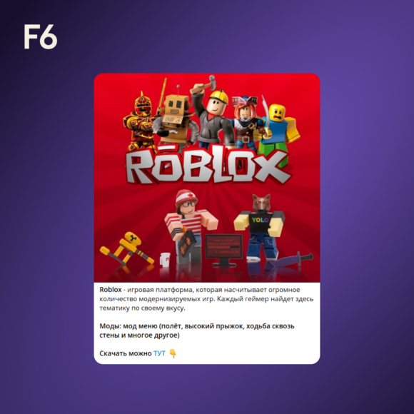 Компания F6, ведущий разработчик технологий для борьбы с киберпреступностью, обнаружила в Telegram схему распространения вредоносных программ для атак мобильных устройств на базе Android через боты, где жертвам предлагается скачать модифицированные популярные игры (моды) и приложения. Для продвижения злоумышленники создают Telegram-каналы, посвященные Roblox, Minecraft и другим популярным у детей играм.