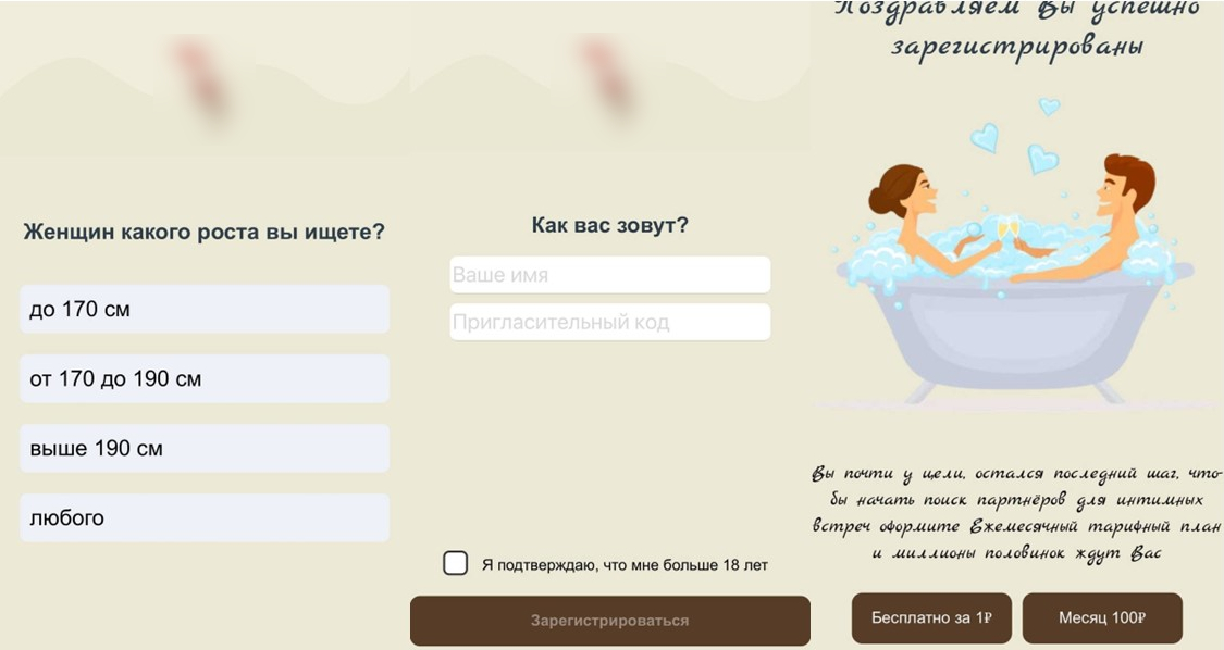 После ответов на анкетные вопросы в приложении у жертвы выясняют её имя и «пригласительный код». «Девушка» объясняет пользователю, что код нужен для получения ссылки. Хотя на самом деле он необходим мошеннику, чтобы «пометить» жертву и в случае удачного хищения денег получить от организаторов преступной схемы свою долю.