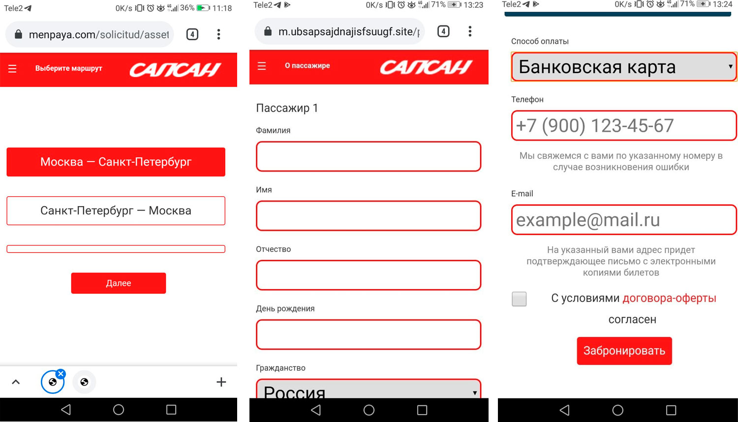 В схеме мошенничества использован классический сценарий: в поисках доступных билетов на «Сапсан» жертва, заманиваемая рекламой, попадает на сайт мошенников. Желая приобрести билет онлайн, она вводит данные банковской карты, в результате теряя и деньги, и данные «пластика».