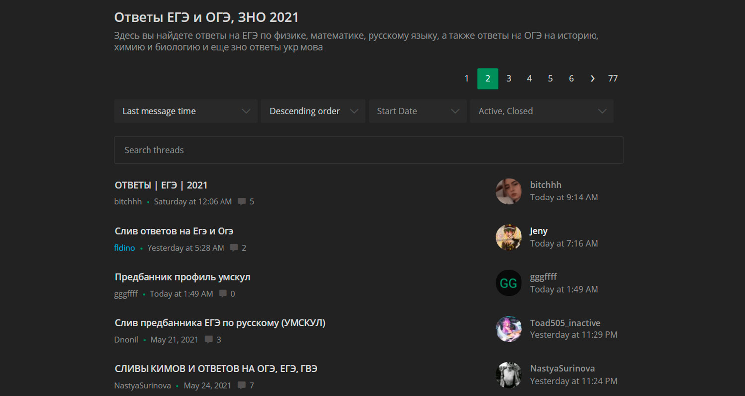 Рис.2. Пример поисковой выдачи на форуме по запросу «Ответы ЕГЭ и ОГЭ 2021».