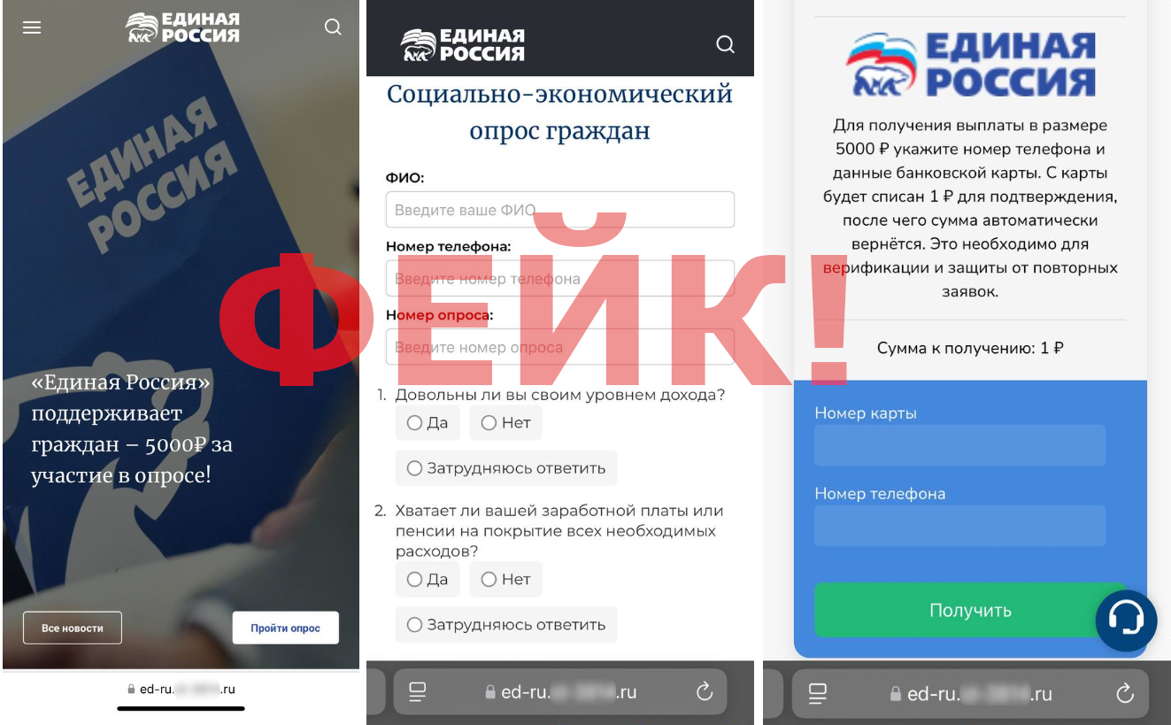 В свою очередь, «Единая Россия» предупреждает: партия не проводит платные опросы и не запрашивает у пользователей данные банковских карт.