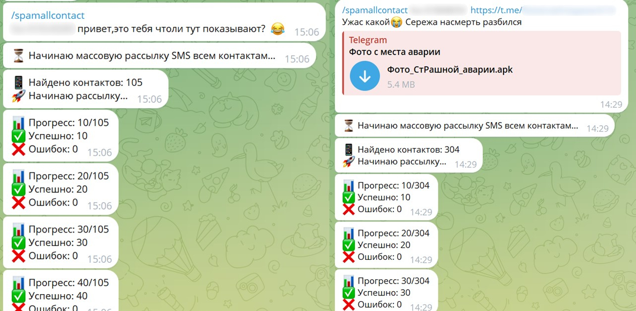 Для большей вероятности запуска вредоносного файла получателями злоумышленники используют провокационные сообщения. Например, APK-файлы под названием «Фото_СтРашной_аварии» сопровождают текстом: «Ужас какой … насмерть разбился».
