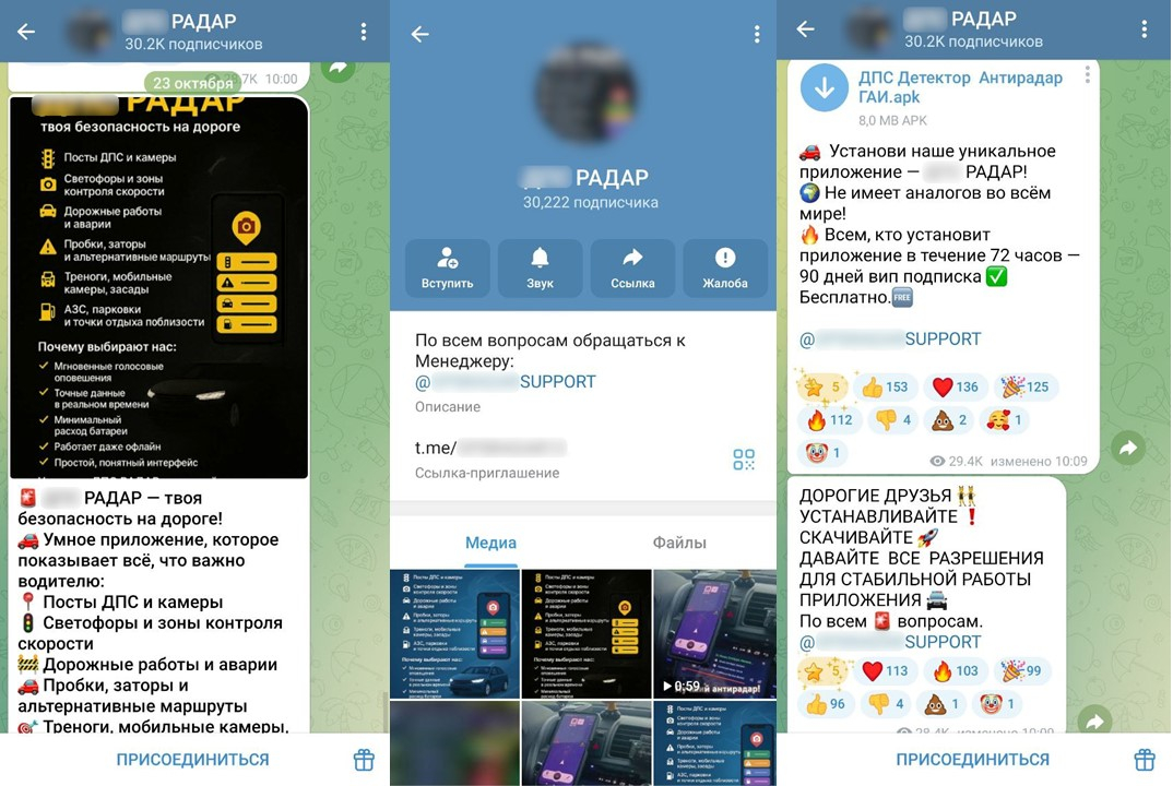 Злоумышленники привлекают внимание пользователей к вредоносному приложению сообщениями, которые оставляют в профильных группах таксистов и каналах в мессенджерах и социальных сетях. Ссылки из этих сообщений ведут в Telegram-каналом с вредоносным APK-файлом.