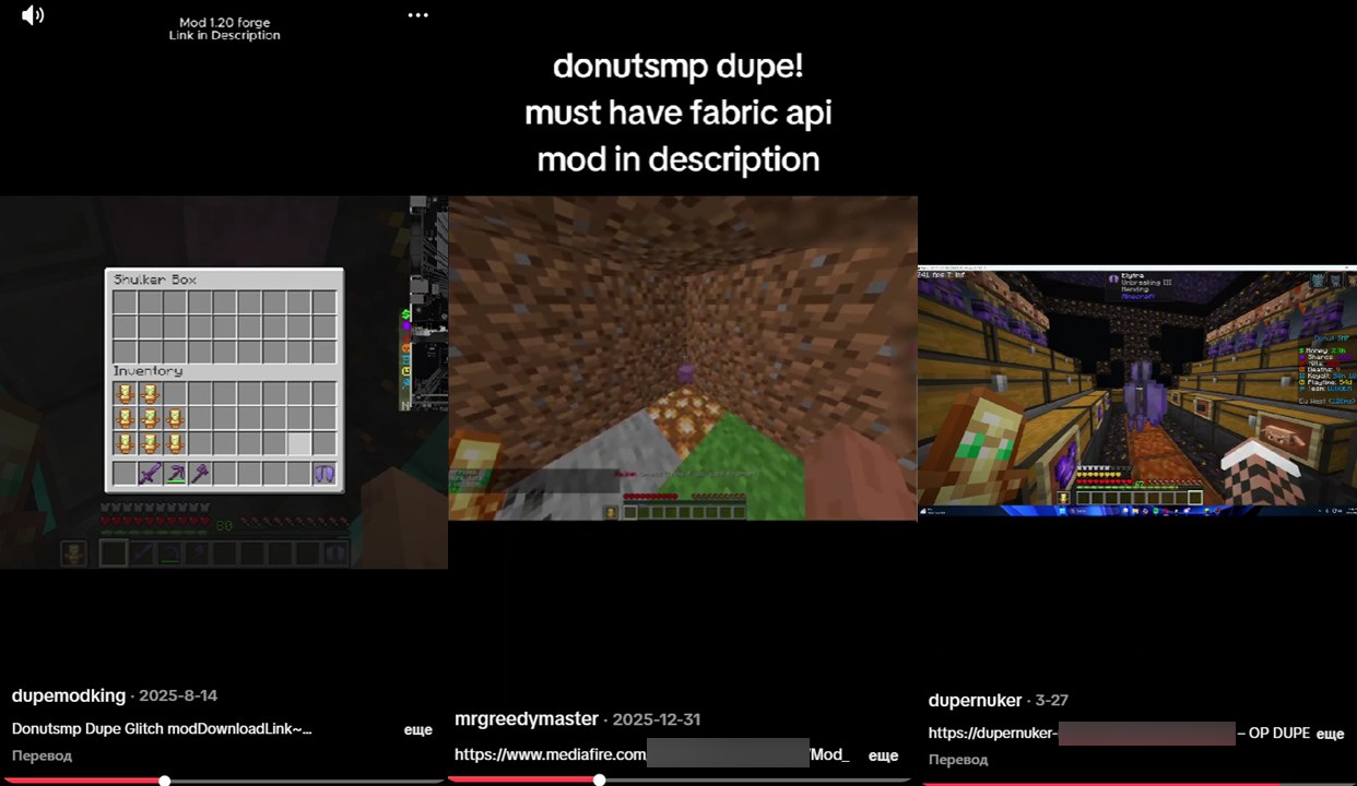 Аналитики департамента защиты от цифровых рисков (Digital Risk Protection) компании F6 зафиксировали новую угрозу для пользователей Minecraft по всему миру, включая российских геймеров. Эту схему киберпреступники активно применяют в 2026 году. Для распространения вредоносного ПО под видом полезного злоумышленники используют короткие видео в TikTok, в которых рекламируют «моды для дюпа» и другие читы.