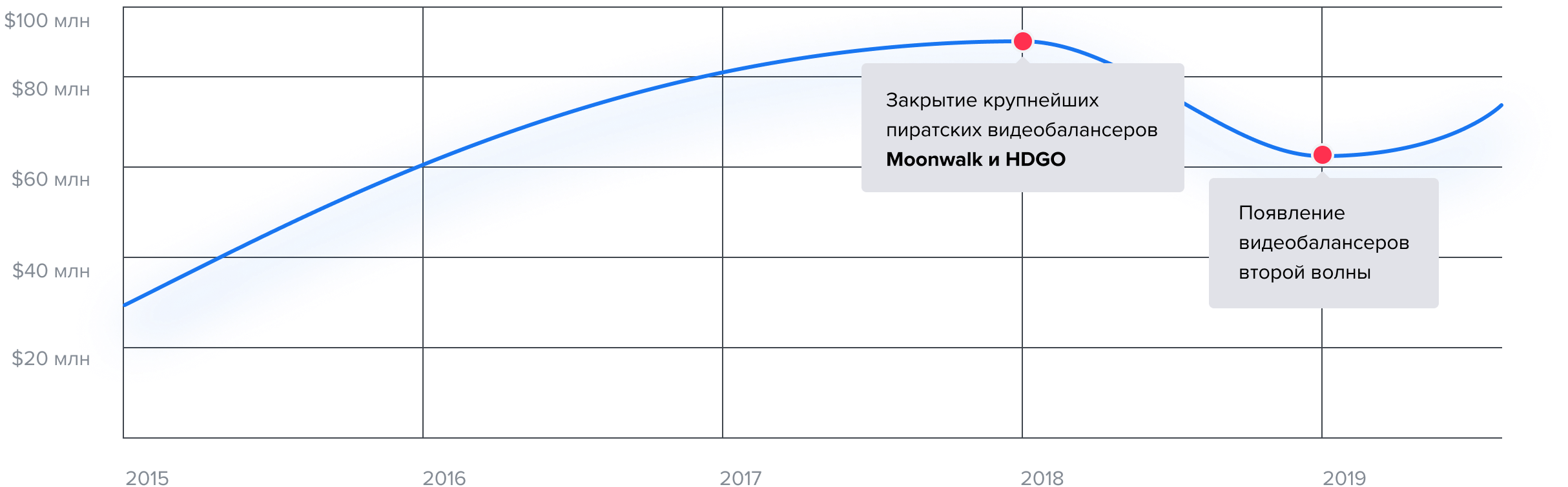Борьба с этим недугом медиаиндустрии ведется уже 20 лет, но именно в последние годы размах пиратского бизнеса приобрел колоссальные масштабы. Русскоязычные киберпреступные конгломераты перестали довольствоваться доходами только с потребителей видеоконтента России и постсоветского пространства. Они начали выходить на международные рынки прежде всего развивающихся стран, многократно увеличивая капитализацию своего теневого бизнеса.